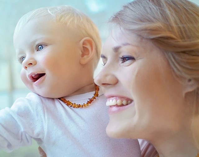 Amberos Natur-Bernstein Babykette Baroque, cognac braunBaby Natur-Bernsteinkette mit Sicherheits- und Anti-Allergie-Verschluss und einzeln von Hand verknotet. Der traditionelle Babyschmuck hilft seit Jahren beim Zahnen. Cognac braun für Mädchen und Junge. Länge: 32cm Bernstein ist einer der ältesten und beliebtesten Schmuck- und Heilsteine. Ihm wird nachgesagt, positive Auswirkungen auf das Wohlbefinden von Babys und Kleinkindern zu haben und Lebensfreude zu schenken. Er lindert Zahnungsschmerzen. Edelste Verarbeitung im Barock-Style mit individuell abgerundeten und geschliffenen Bernsteinperlen. Durch die Unikatsteinchen ist jede Kette einzigartig! Sicherheit geht vor: Die Natur-Bernstein Babykettchen werden mit der speziell gesicherten Knüpfmethode produziert, das heisst vor und nach jedem einzelnen Bernstein gibt es ein Knötchen. Bei einem Riss würden sich somit nicht alle Steine lösen sondern maximal 1 Stück. Zusätzlich sind die Kettchen aus extra reissfester Schnur gefertigt und haben einen Sicherheitsverschluss, der bei Zug automisch aufgeht. Somit können die Bernsteinketten beim Anhängen nicht reissen und es besteht keine Strangulationsgefahr. Amberos Natur-Bernstein Babyketten sind aus 100% natürlichem Bernstein aus Europa. |