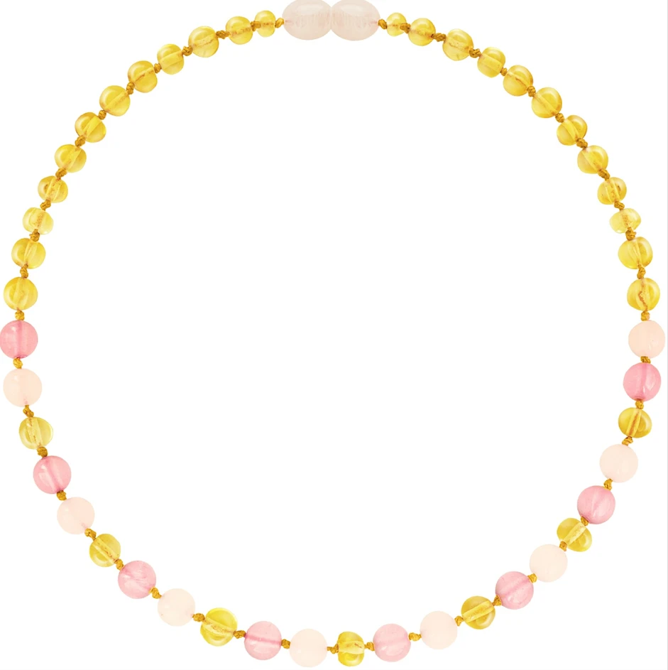 Amberos Bernsteinkette, Baroque Mit Edelsteinen Pink-Jade Und Quartz