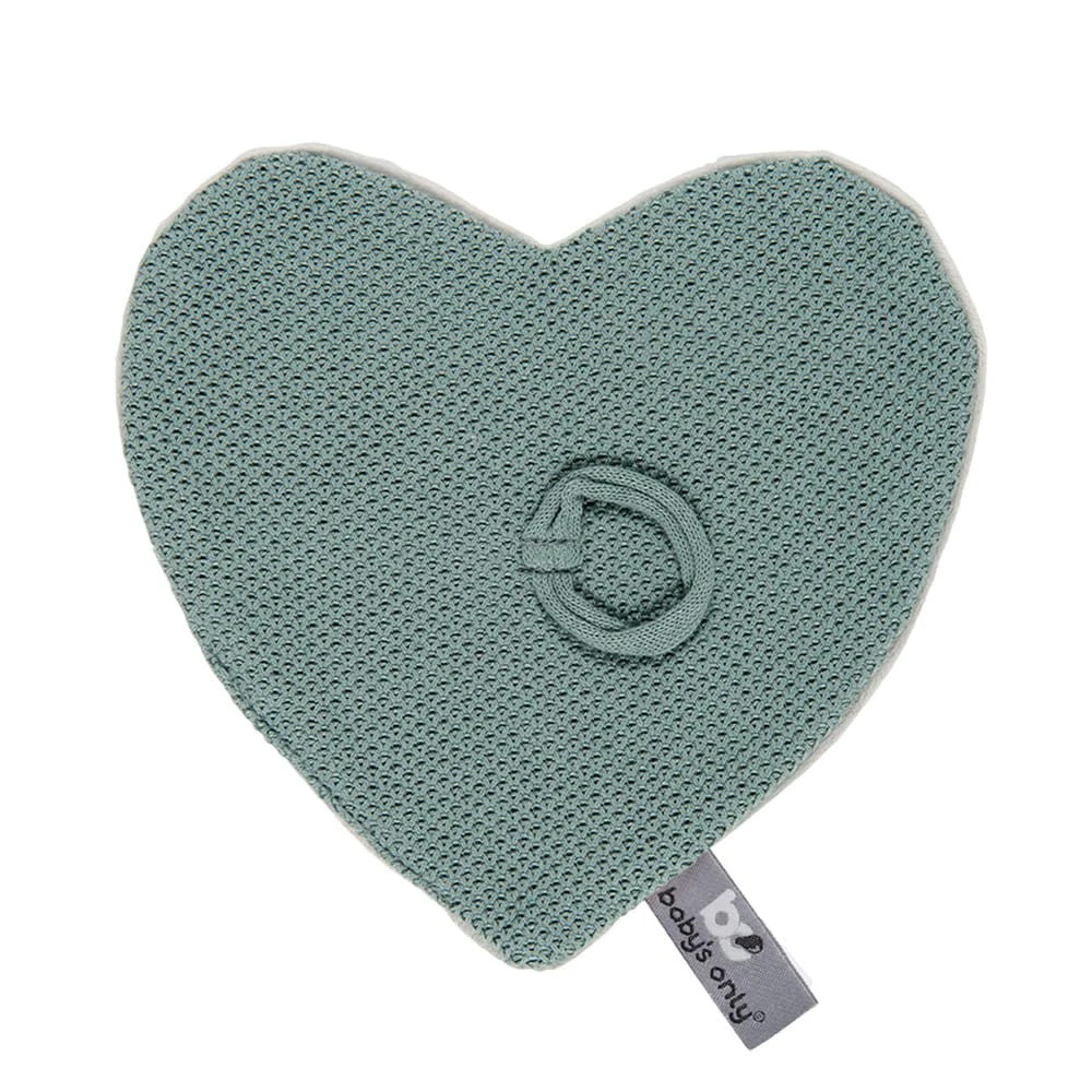 Bei diesem Baby’s Only Schnullertuch in der Farbe Stonegreen handelt es sich um eine weiche Strickarbeit mit einer Schlaufe zur Befestigung eines Nuckels. Das Nuckeltuch ist herzförmig und die Rückseite besteht aus weichem Teddystoff. Ihr Baby wird es genießen, hiermit zu spielen und zu kuscheln. Das Schnullertuch Classic von Baby’s Only kann bei 30 Grad gewaschen werden, ist formbeständig und farbecht. Dieses gestrickte Tuch aus der Classic-Reihe ist in diversen Farben erhältlich, z. B. Stonegreen. Maße 20 x 20 cm.