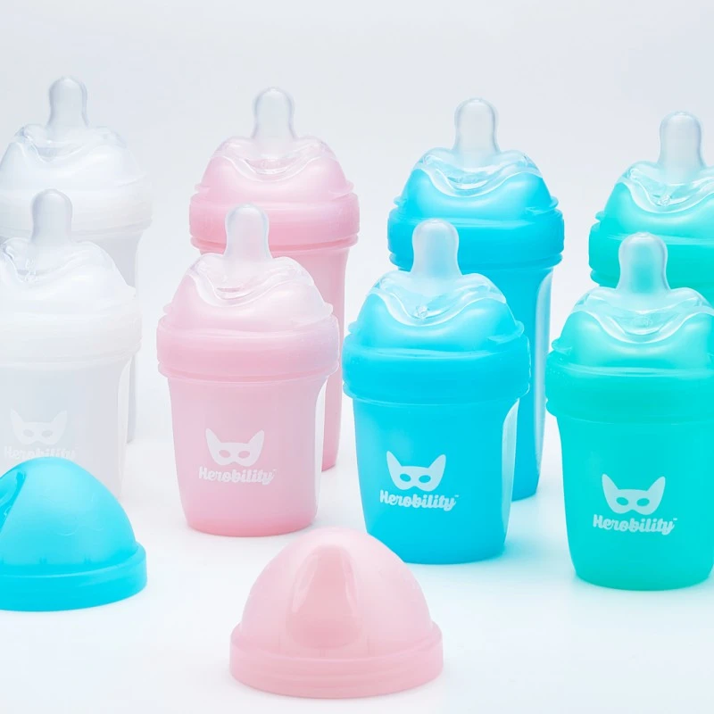 Die ovale Brustform von HeroTeat passt perfekt in den Mund des Babys, gibt eine natürliche Verriegelung und verleichtert den Übergang zwischen Stillen und Flaschenernährung. Das einzigartige, gebogene Design schliesst die Mundwinkel Ihres Babys, verringert das Risiko von Speichelfluss und verhindert vollständig, dass Luft in den Mund gelangt.