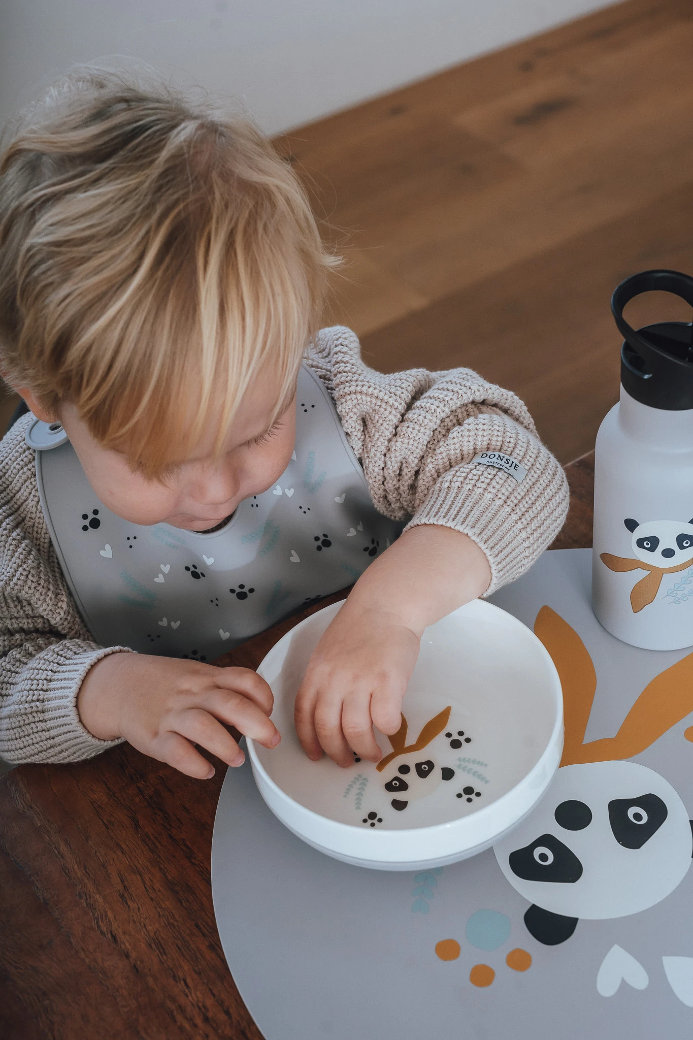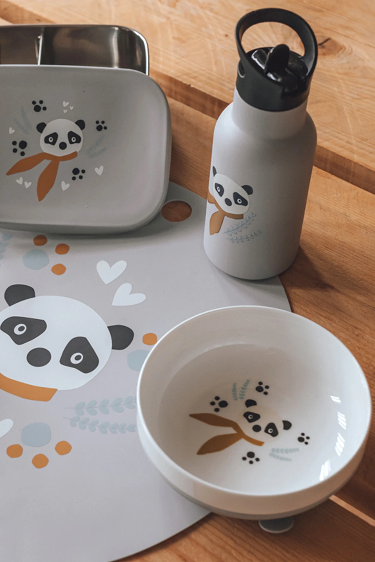Die Schalen sind in unterschiedlichen Designs erhältlich. Jedes Design auch erhältlich als Trinkflasche, Brotdose, Lätzchen und Platzset.