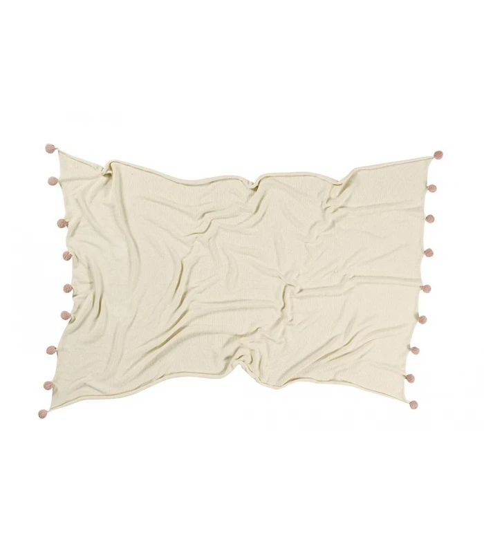 Artisanal: Jeder Pompon wird einzeln angenäht und von Hand gefärbt. Jede Decke ist einzigartig. Einfach zu kombinieren: Passende Teppiche und Körbe sind im Shop erhältlich.