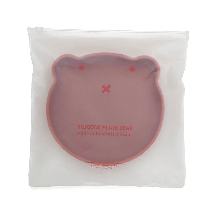 Petit Monkey Silikon Teller mit Saugknopf Bär, Mahogany Rose