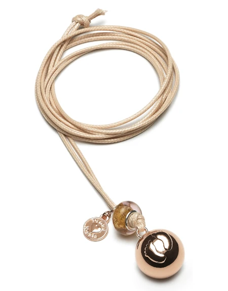 Die Bola-Klangkugel kann auch nach der Geburt als Schmuck beim Stillen oder als Halsband verwendet werden.