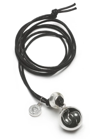 Die Bola-Klangkugel kann auch nach der Geburt als Schmuck beim Stillen oder als Halsband verwendet werden.