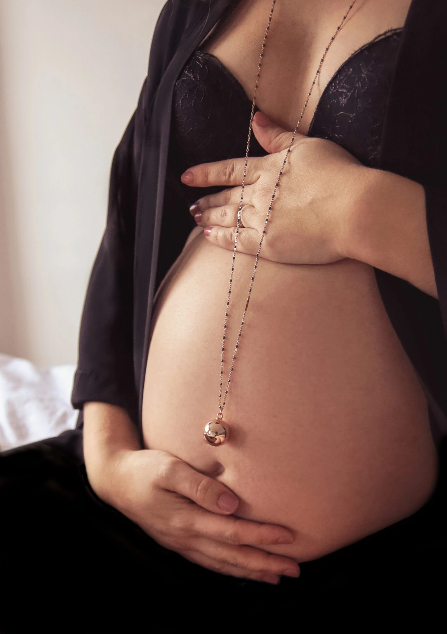 Die Bola-Klangkugel kann auch nach der Geburt als Schmuck beim Stillen oder als Halsband verwendet werden.