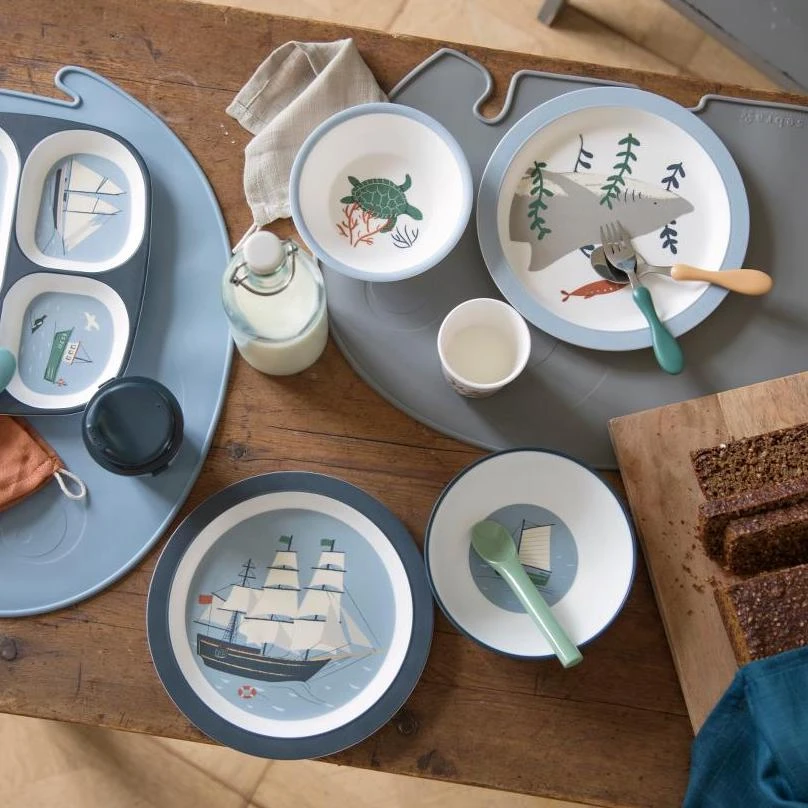 In der Schale kann das Kind ein kleines Segelboot auf hoher See entdecken. Die Illustrationen können dafür sorgen, dass die Mahlzeiten mehr Spaß machen und das Motiv kann aktiv eingebunden werden, wenn das Kind keine Lust zu essen hat. Ob das kleine Boot bald an Land anlegt? Welche Farbe hat das Boot? Und können Schiffe eigentlich durch Müsli oder Joghurt segeln?