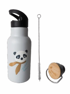Die hübschen Trinkflaschen mit niedlichen Tiergesichter-Aufdrucken eignen sich für Kindergarten, Schule, Sport und weitere Unternehmungen. Die doppelwandige, schadstoffreie Flasche aus Edelstahl kann kohlensäurefreie kühle als auch warme Getränke bis zu 12 Stunden kalt bzw. warm halten. Sie wird mit zwei Trinkverschlüssen geliefert, einmal als Edelstahldeckel und einmal als Sport-Deckel mit Trinkmöglichkeit. Beide Deckel besitzen einen praktischen Griff zum Tragen als auch Anbringen am Kinderwagen oder einer Tasche. Sie schließen dicht mit der Flasche ab, so dass nichts auslaufen kann.